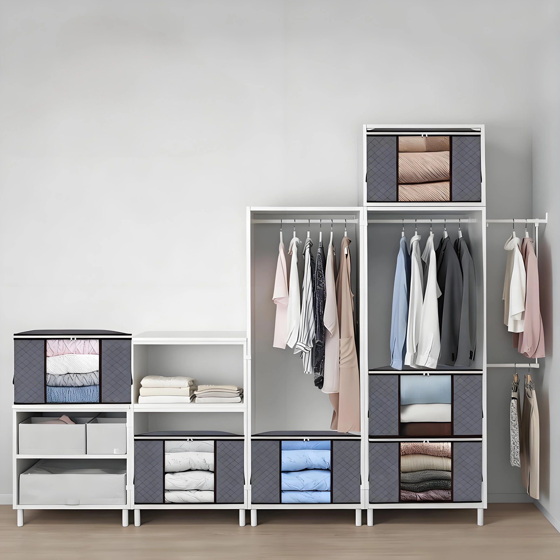 PREMIUM MATERIAL CLOTHES STORAGE BAGS: Crafted from high-quality, odorless, three-ply composite non-woven fabric, these bags offer excellent support. They are breathable, waterproof, and easy to clean, effectively protecting your items from dust, mildew, and unpleasant odors. The fabric is durable and resistant to tearing, and the bags can be folded for convenient storage when not in use.